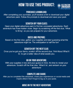 After completing your purchase, you’ll receive a link to download your digital adventure pack. Follow the prompts to download and save your pack. - Scratch Off Your Clues:
